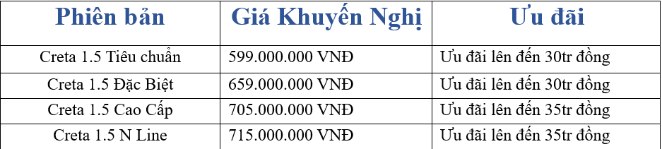 Bảng giá Khuyến mại Hyundai Creta 2026: